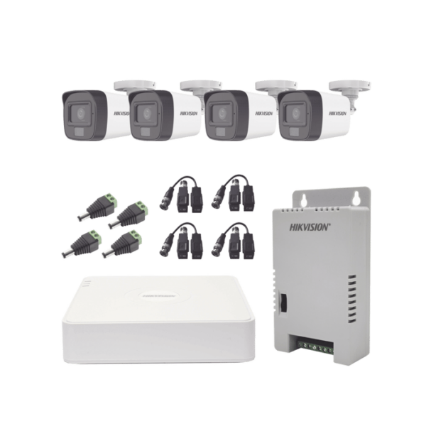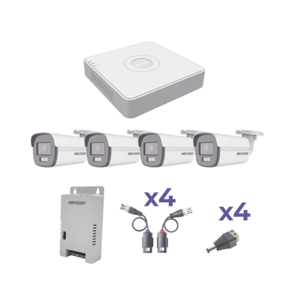 KIT COLORVU TURBOHD 1080p Lite / DVR 4 Canales / 4 Cámaras Bala (exterior 2.8 mm) / Transceptores / Conectores / Fuente de Poder Profesional