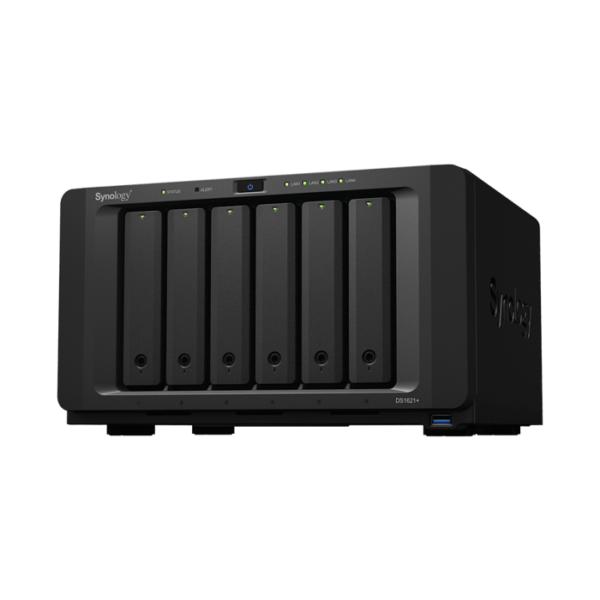 NAS Synology DiskStation DS1621+ | 6 Bahías | Procesador AMD Ryzen V1500B | 4 GB DDR4 ECC | Expansión Hasta 16 Bahías | 2 Ranuras M.2 NVMe | Puerto 10GbE RJ-45 | Compatibilidad RAID | Btrfs | Virtualización | Caché SSD.