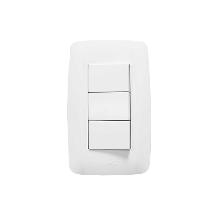 - Placa con 3 interruptores tipo escalera, para instalación directa en muros de espacios interiores del hogar, negocio o la oficina.
