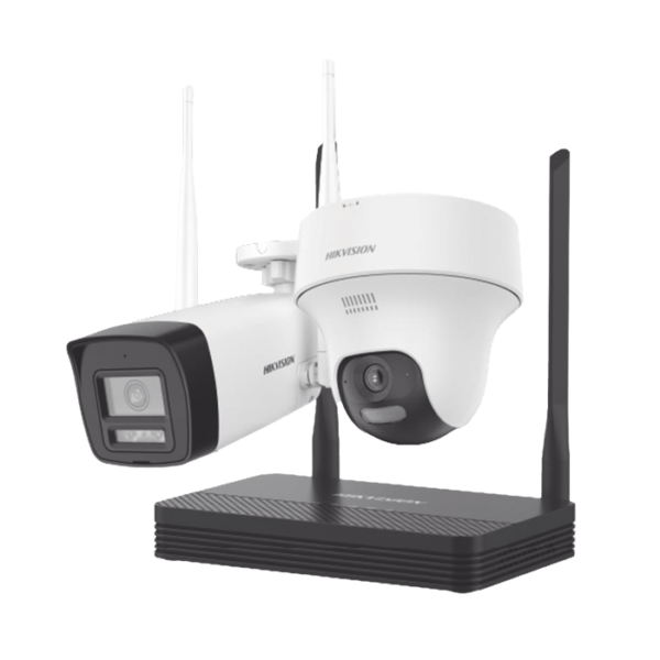 Kit IP Inalámbrico 2 Megapixel (1080p) / NVS 4 Canales / 2 Cámaras Bala para Exterior con Lente 2.8 mm y Dual Light (30 mts IR + 20 mts Luz Blanca) / Audio Bidireccional (Micrófono y Bocina) / Soporta Micro SD de 512 GB