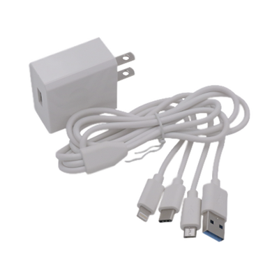 Cargador de pared USB de 5 Vcc 2A / Multi-puertos / USB-C / Micro USB / Tipo C / Lightning (iPhone) / Extensión de cable 1.2 metros
