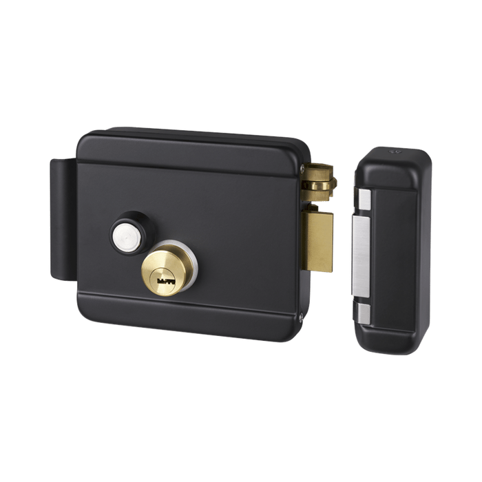 Cerradura Eléctrica con Botón de Salida / Incluye Llave / Exterior / Derecha / Color Negro
