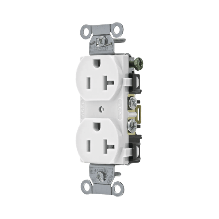 Contacto Dúplex 20 A, 125 V, 2 Polos, 3 Hilos, Cableado Posterior y Lateral, Color Blanco (Nema 5-20R).