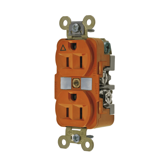 Contacto Dúplex Conexión a Tierra Aislada 15A 125V/ 2 Polos 3 Hilos/ Color Naranja/ Nema 5-15R/ Grado Industrial.