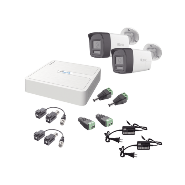 Kit HiLook Audio Bidireccional TurboHD 1080p / DVR 4 Canales / 2 Cámaras Bala (Exterior) con Bocina y Microfóno Integrado / 2 Fuentes de Poder / Accesorios