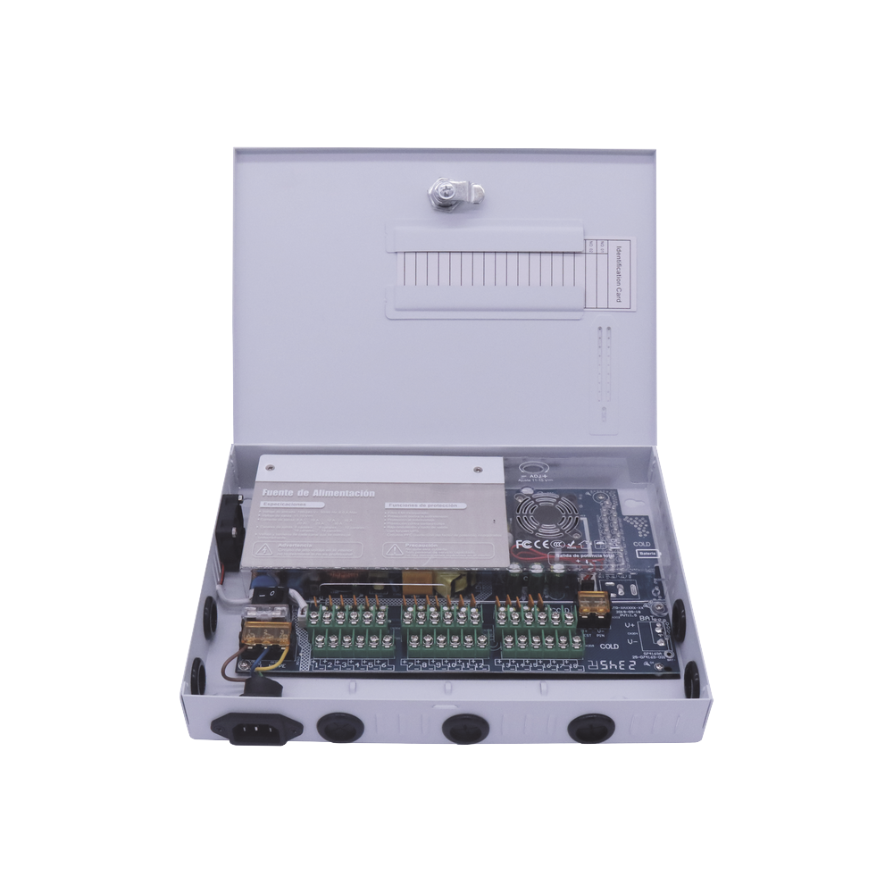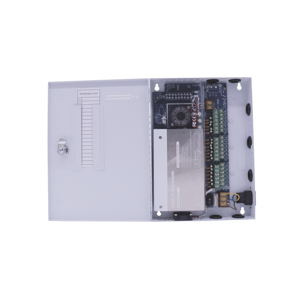 Fuente de Alimentación / 1 Salida 11-15 Vcc / 5 A / Temporizador Integrado / Con Capacidad de Batería de Respaldo / Requiere Batería / Aplicaciones en sistemas de control de Acceso