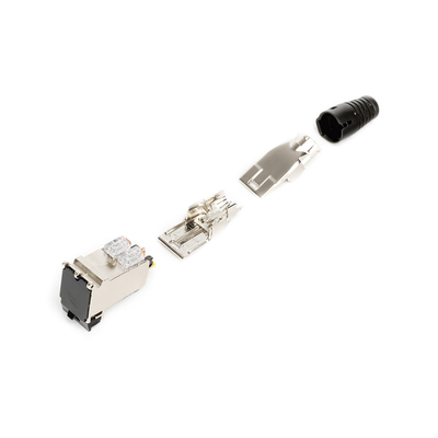 Plug RJ45 Cat6A Blindado, Terminación en Campo, Compatible con Todas las Categorías, Con Clip Protector de Seguro